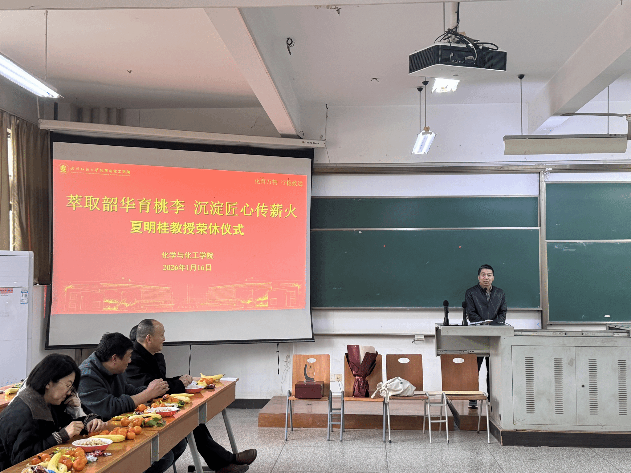 学院党委书记杜勇在致辞中,对夏明桂教授的职业生涯给予了高度评价。他指出,夏明桂教授的职业生涯始终与奋斗相伴、与奉献同行,每一段历程都闪耀着责任与担当的光芒。1987年12月,夏教授怀揣对化工事业的热爱投身中国石化总公司武汉分公司,开启了长达19年半的企业奋斗生涯。期间,他历任电大老师、科研室主任、技术处高工等职务,扎根一线深耕技术钻研,凭借精益求精的工匠精神屡获殊荣,先后获评武汉市杰出青年岗位能手、斩获国家技术发明二等奖、荣获国务院政府特殊津贴等,成为行业公认的技术骨干与青年榜样,为国家石化产业发展作出了卓越贡献。