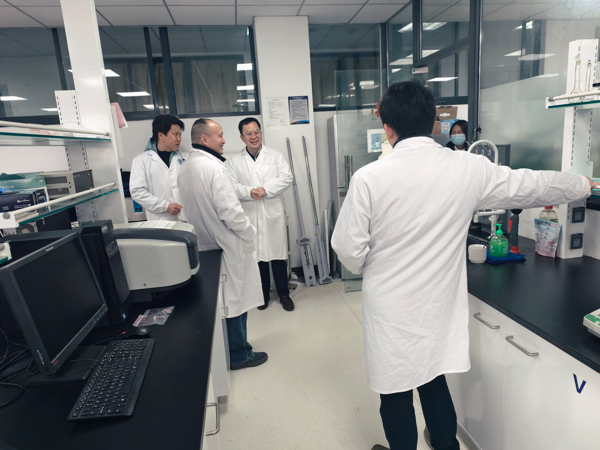 检查过程中,领导小组一行坚持“全覆盖、无死角、重实效”的原则,先后走访了各类教学实验室、科研实验室及试剂存储区域,围绕实验室安全核心环节、实验教学准备情况开展细致排查。针对检查中发现的个别实验室物品堆放杂乱、安全标识不清晰、部分试剂存放不规范、易制爆采购等问题,领导小组现场提出明确意见和整改时限要求,学院安全工作领导小组将对具体情况进行跟踪复查。