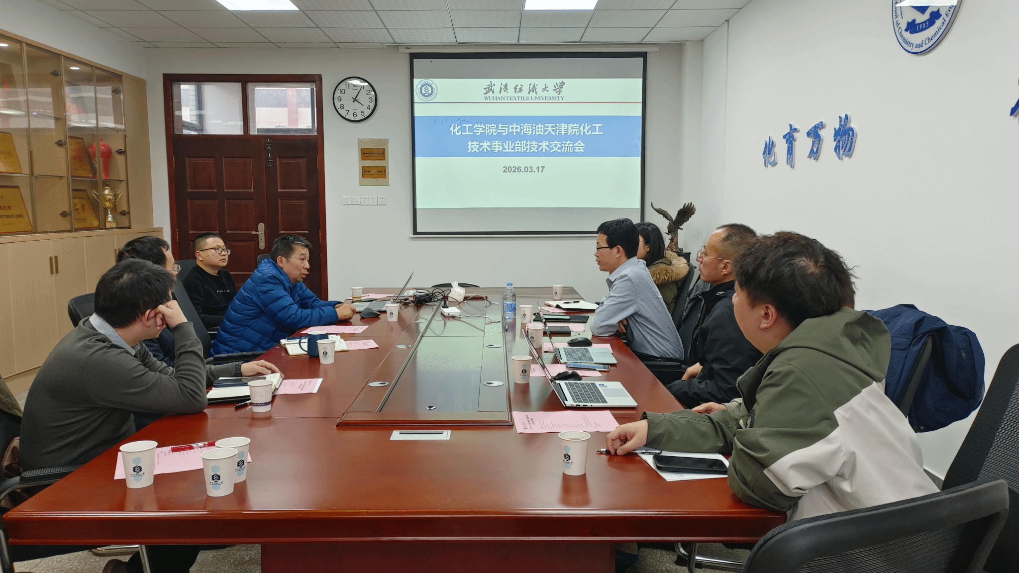 2026 年 3 月 17 日下午,中海油天津化工研究设计院有限公司化工科技事业部专家团队到访武汉纺织大学私密直播,双方在学院 201 会议室开展炼油化工与新材料技术专题交流会,就技术研发与校企合作事宜深入洽谈。